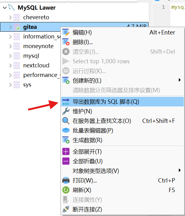 使用 HeidiSQL 备份数据库: